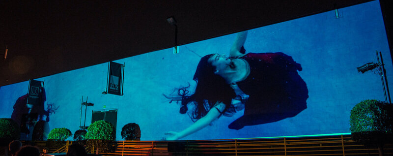 Documentation of a site-specific video projection created by artist Kate Johnson as part of her evening "Everywhere In Between". Enveloping the buildings of historic Bergamot Station Art Center in light, projections, dance and music, Johnson transformed the art campus into a single art installation. The video projection created for the evening specifically for this building is an exploration of the concept of "in between". From linearity to curves, form to figure, roving shadows to fluidic surrender, the piece evolves to a final moment of whirling meditation before returning back to form.
